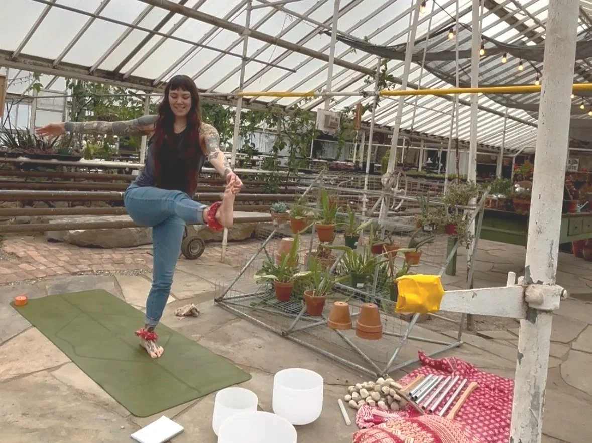 A morning slow flow class + sound bath at Graye’s Greenhouse~3/20